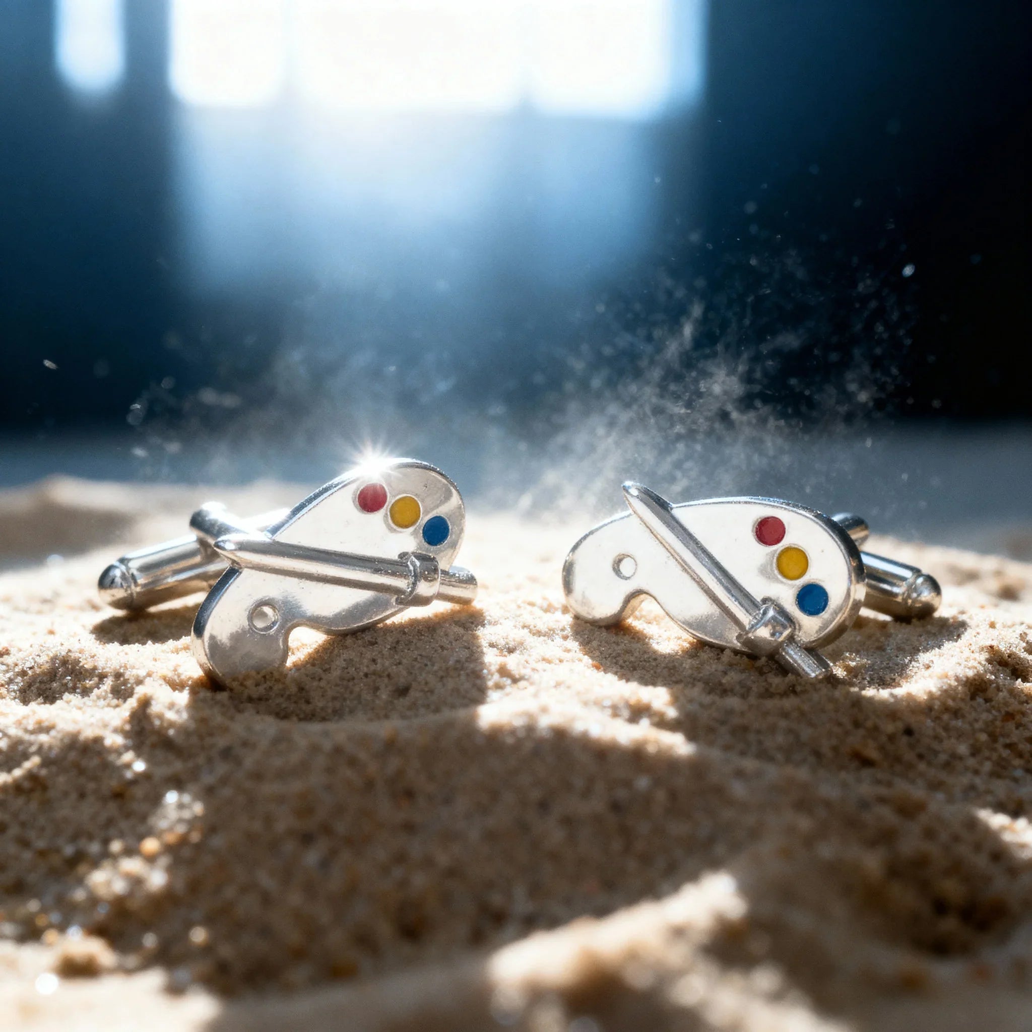 Estos gemelos son el regalo perfecto para pintores y artistas. Incluyen un par de paletas de pintura plateadas con pinceles pequeños.