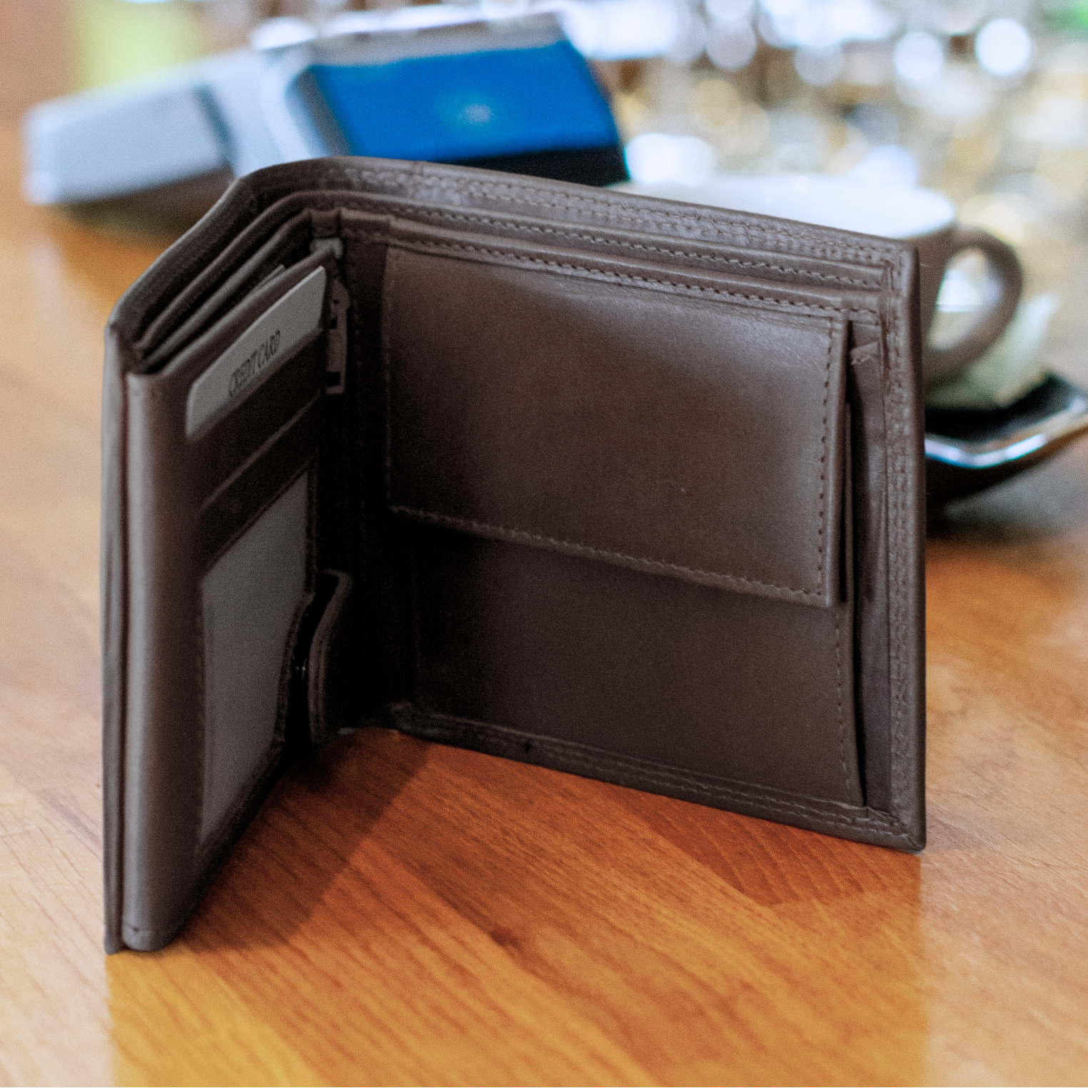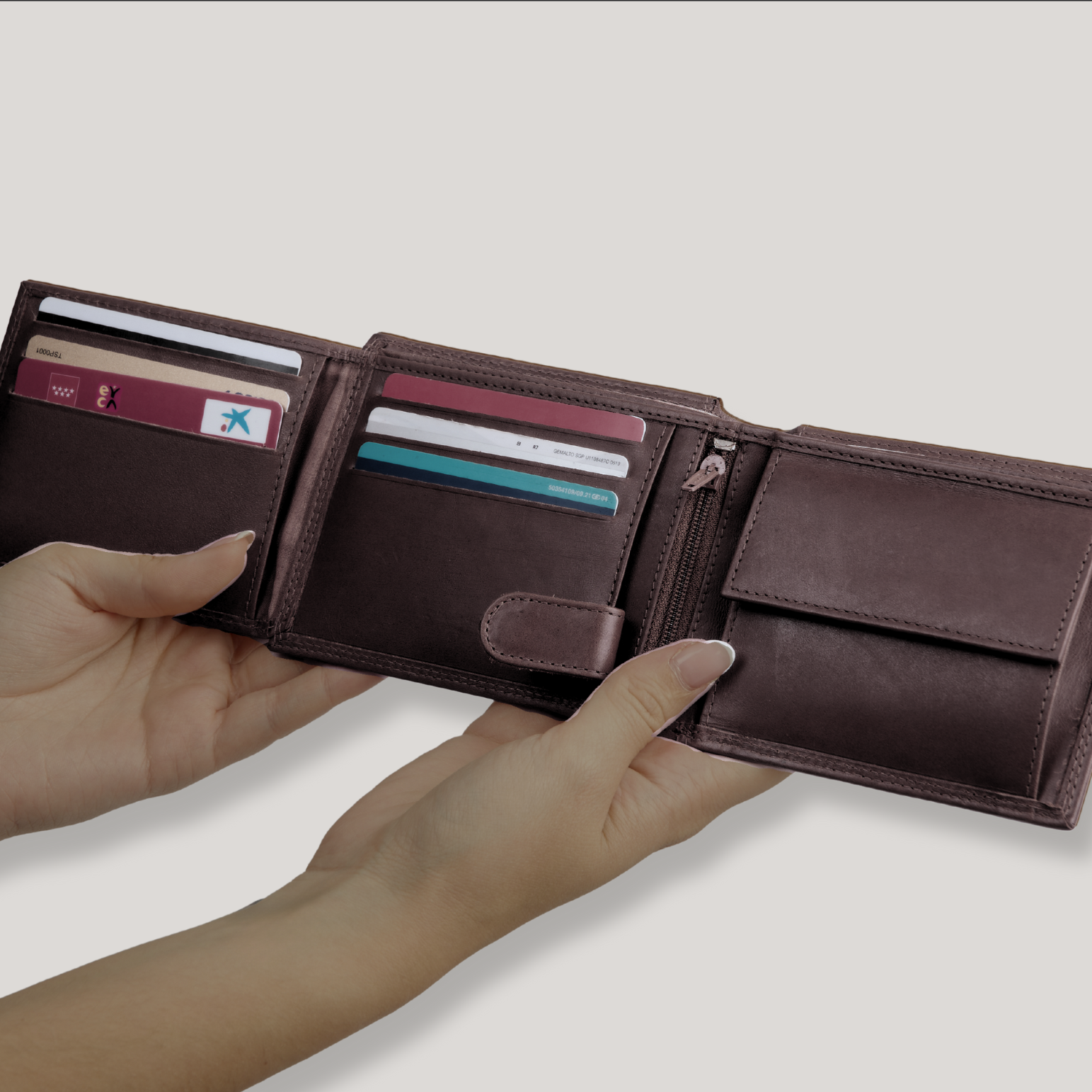 Geneva · Billetera clásica de cuero auténtico café, compacta