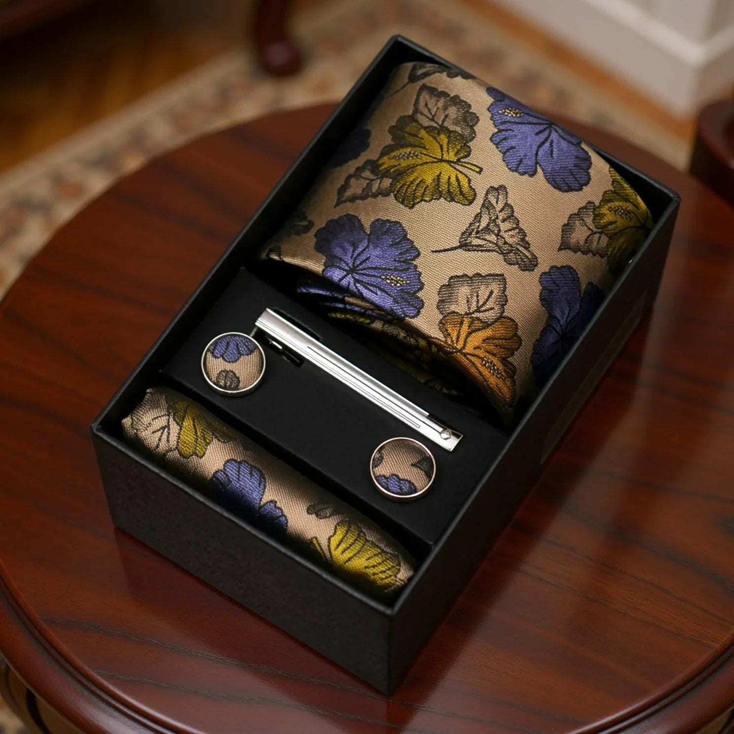 Otoño · conjunto de corbata floral con pañuelo, gemelos y pasador