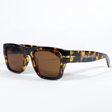 Estas gafas de sol cuadradas de alta gama presentan una montura marrón ligera con un llamativo estampado de llamas y lentes marrones con protección UV400. Las patillas tienen un aro metálico minimalista, moderno y elegante.