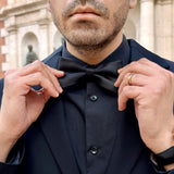 Este set de regalo de 3 piezas incluye una pajarita negra (12 x 6 cm), gemelos a juego y un pañuelo de bolsillo de 23 cm. Clásico y sencillo. La combinación perfecta para tu esmoquin.