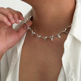 Collar de aleación con adorno de joyería personalizado en forma de dientes de tiburón. Ajustable de 45 a 52cm.