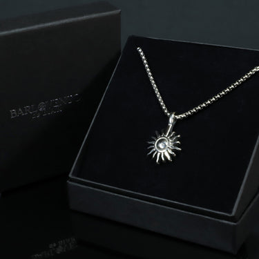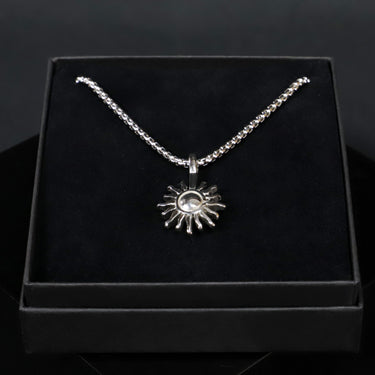 Small link chain necklace with stainless steel sun charm, 60 cm long