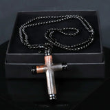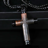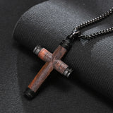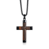 316L stainless steel chain necklace with a wooden cross. The black chain is 60 cm long. The cross is handmade from high-quality wood and measures 47 mm x 30 mm.