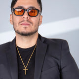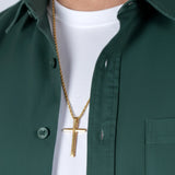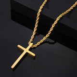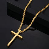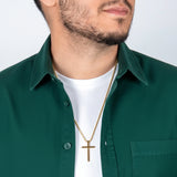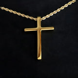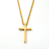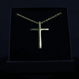 Gold-plated 304 Stainless Steel cross chain necklace. The chain measures 60cm long and the cross measures 4.1cm x 2.5cm.