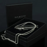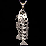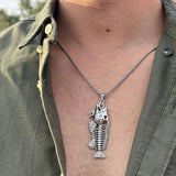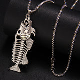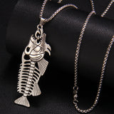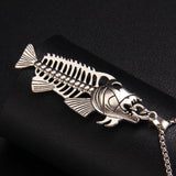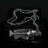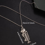 Stainless steel fish charm chain necklace. The chain is 70cm long, and the fish itself measures 6.8cm by 2.3cm. The fish is made of zinc alloy.