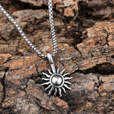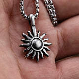 Small link chain necklace with stainless steel sun charm, 60 cm long