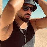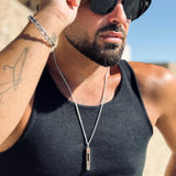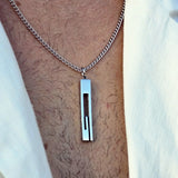 Titanium steel bead chain necklace. Adjustable length from 55 to 60 cm. Includes a 40 mm x 7 mm pendant.