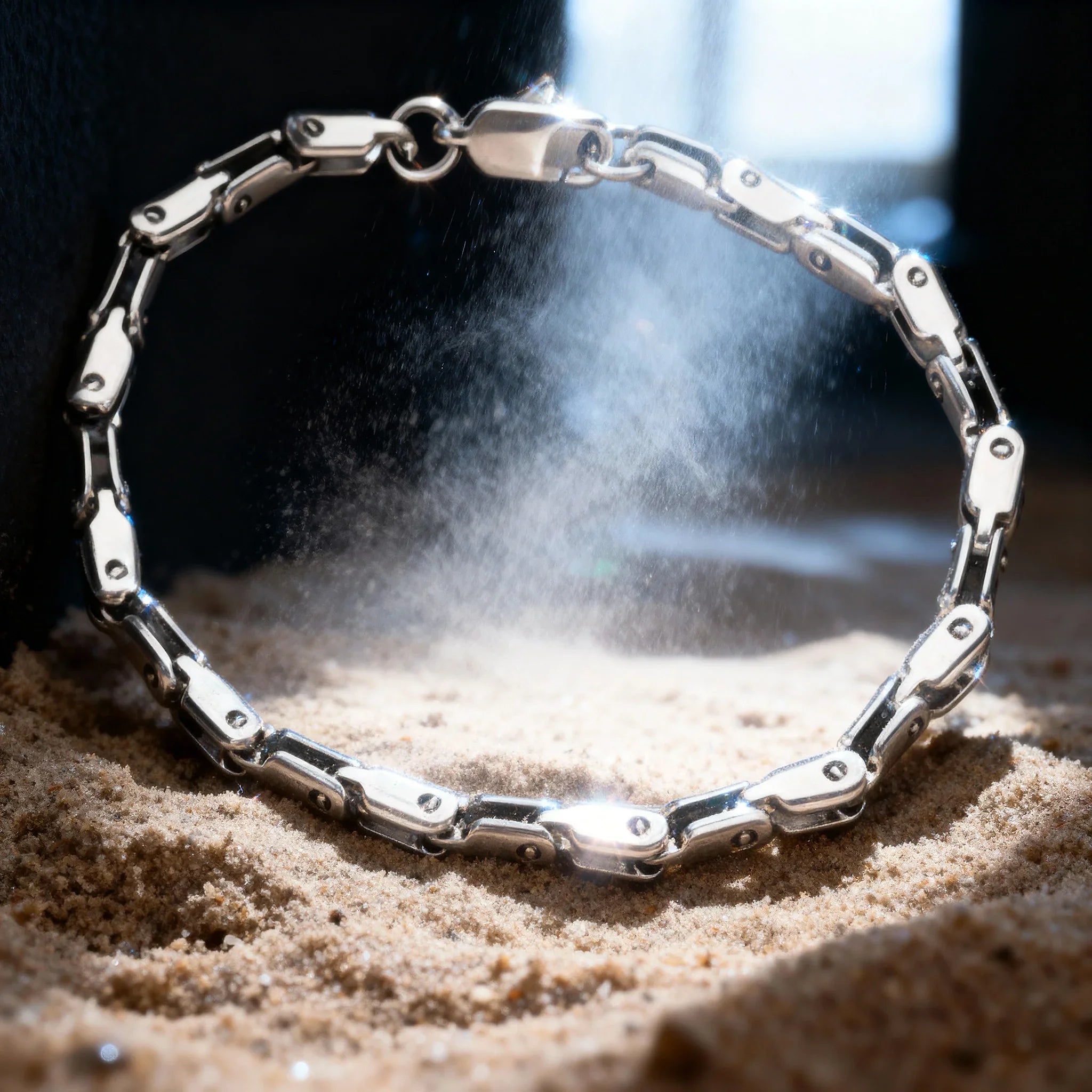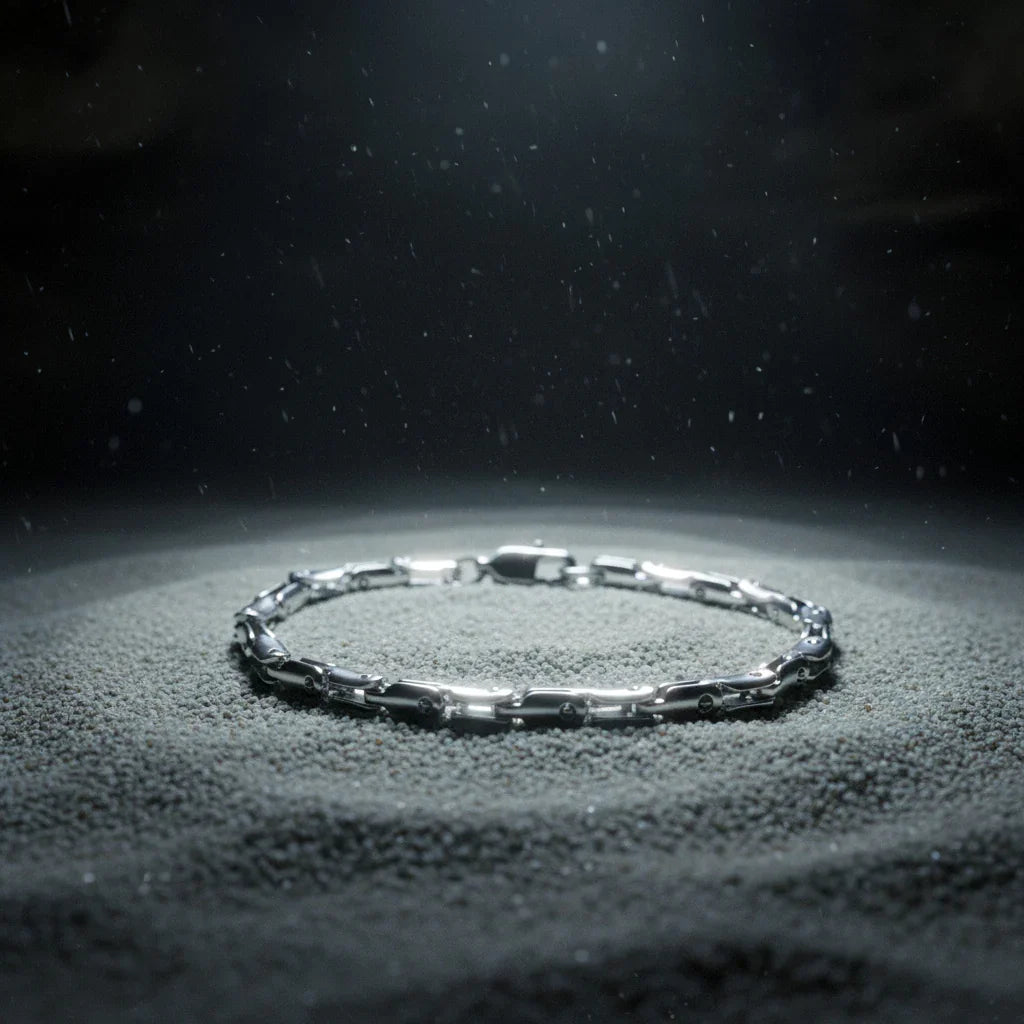 Stainless steel link bracelet. Matching necklace available. 190mm long x 4mm wide. Japanese-style buckle.
