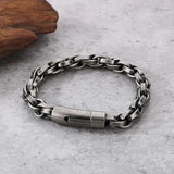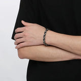 9mm wide stainless steel chain link bracelet with a black enamel finish. 21cm long.