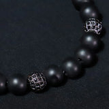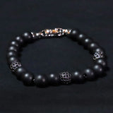 Stainless steel and copper bracelet with zirconia and tiger's eye beads in black, 21.5 cm