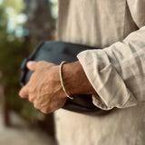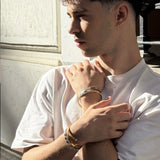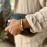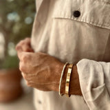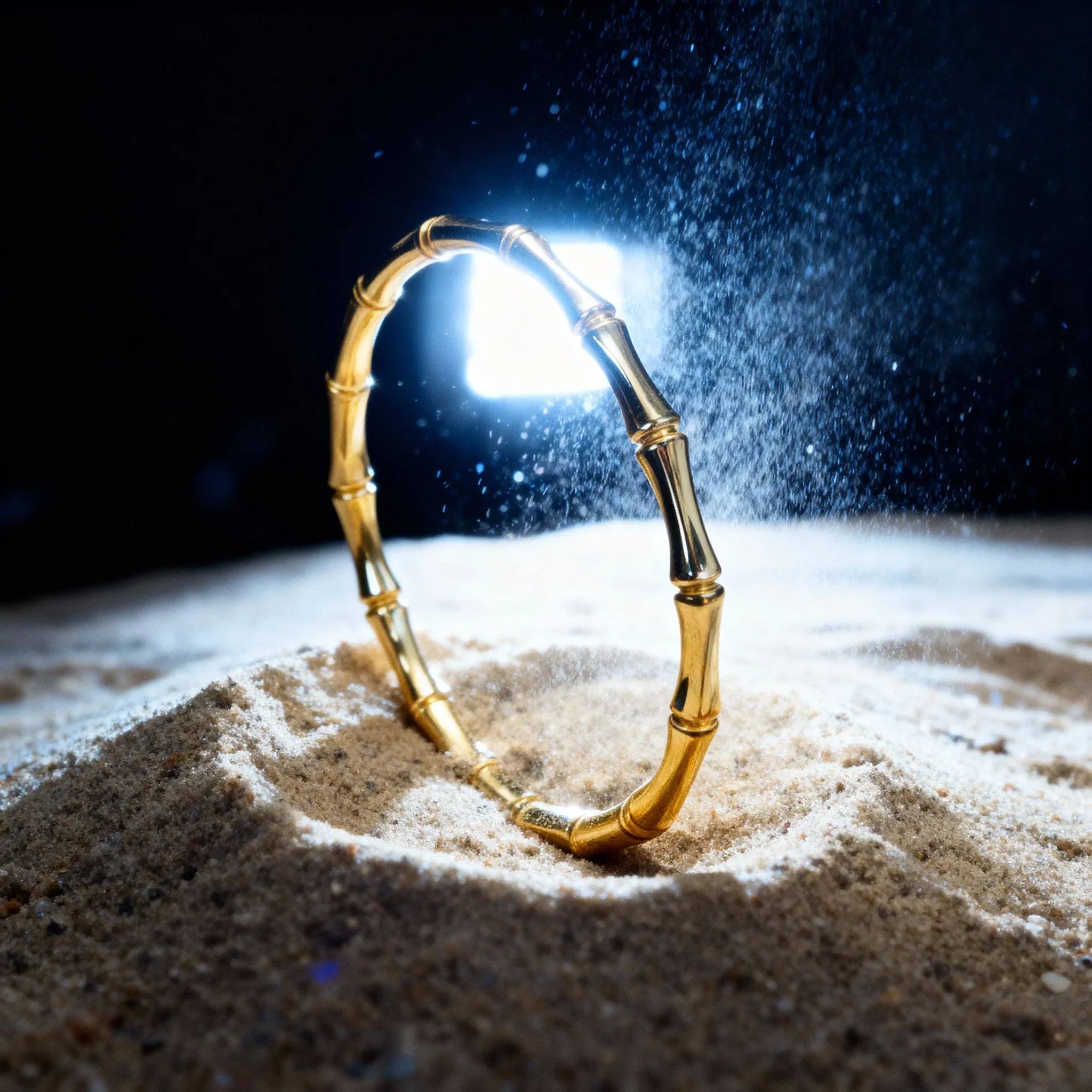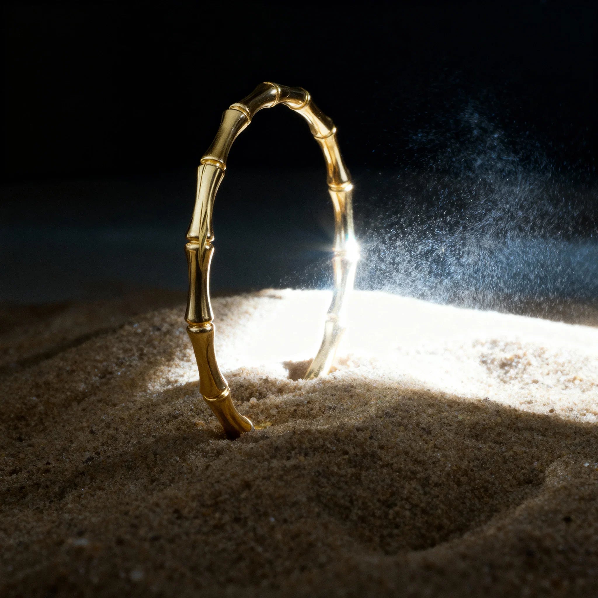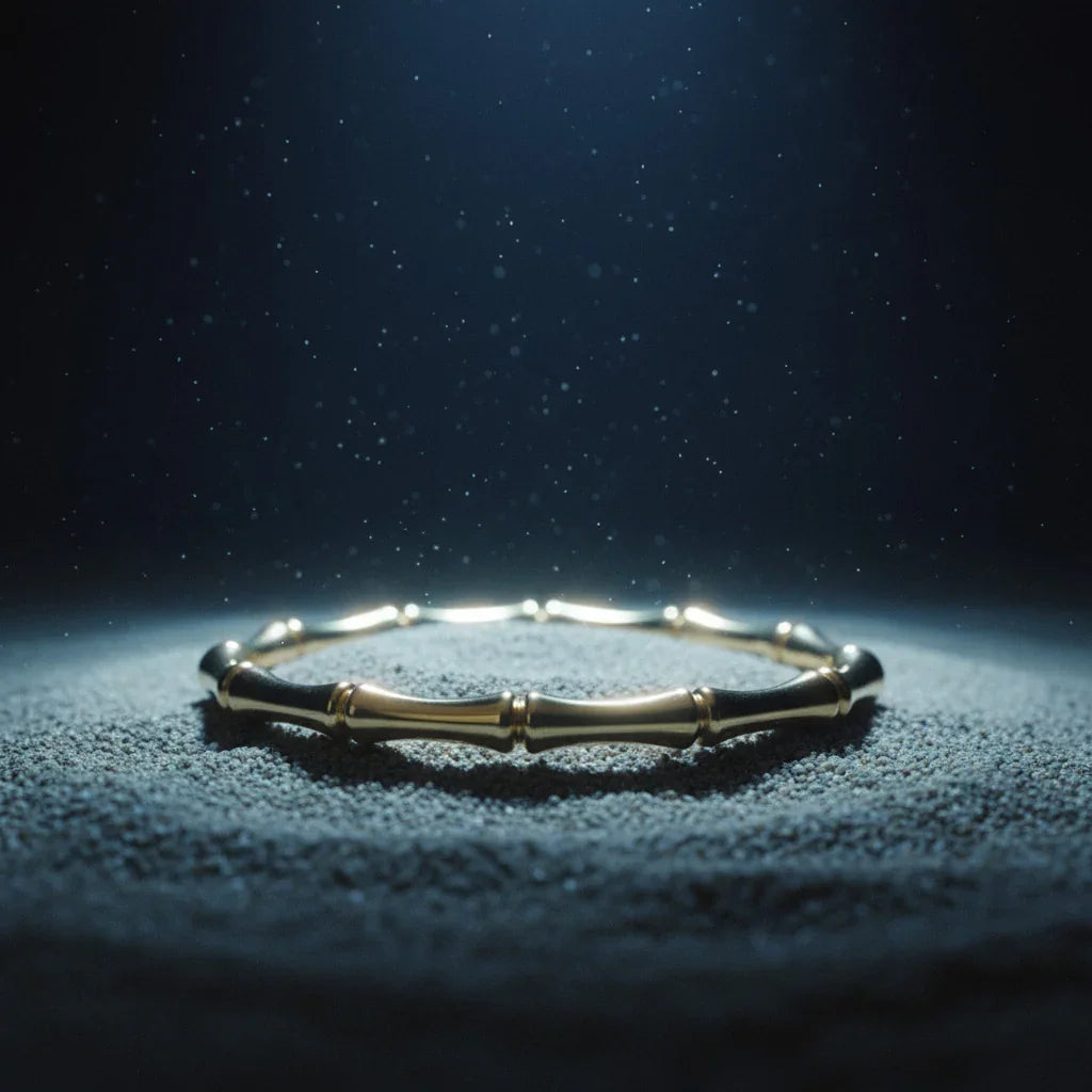 Rigid bamboo-effect alloy bracelet. Made of gold-colored titanium.