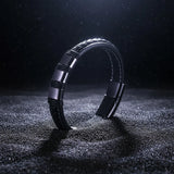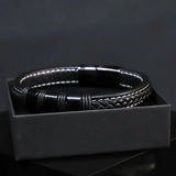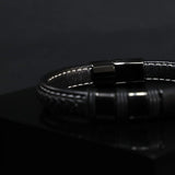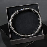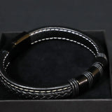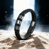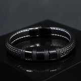 High-quality genuine black leather bracelet with a black stainless steel magnetic clasp. 23cm long.