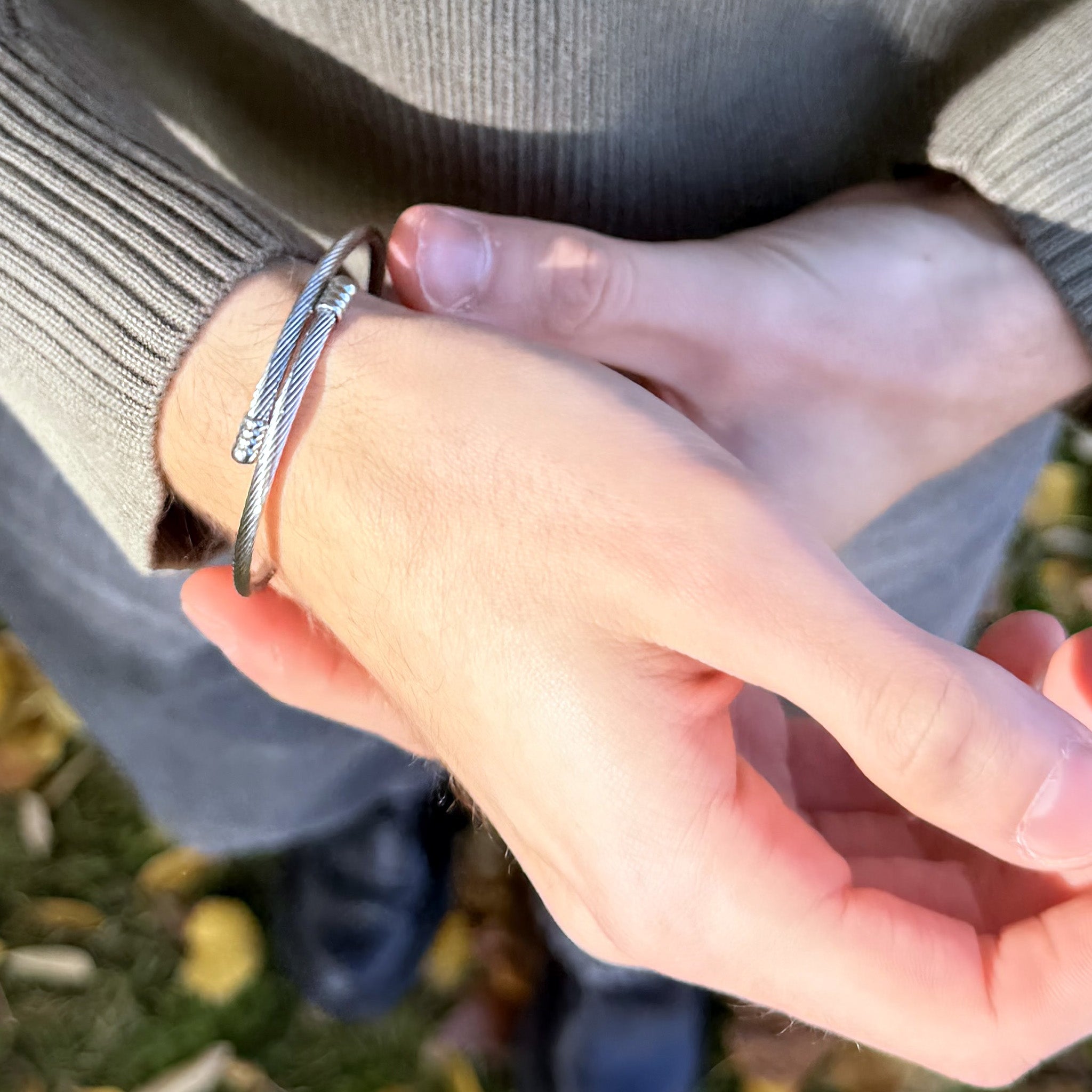 Hypoallergenic titanium steel rigid bracelet. Adjustable. Also available in gold and rose gold.