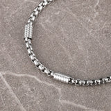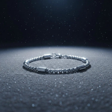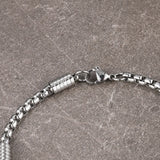 Stainless steel chain bracelet with geometric links. 210mm long by 5mm wide.