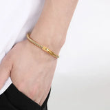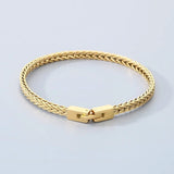 Gold-plated stainless steel rigid chain bracelet. 210 mm long by 4 mm wide.