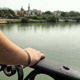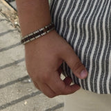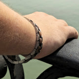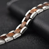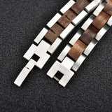 Geometric style bracelet made of walnut wood and stainless steel, 22 cm