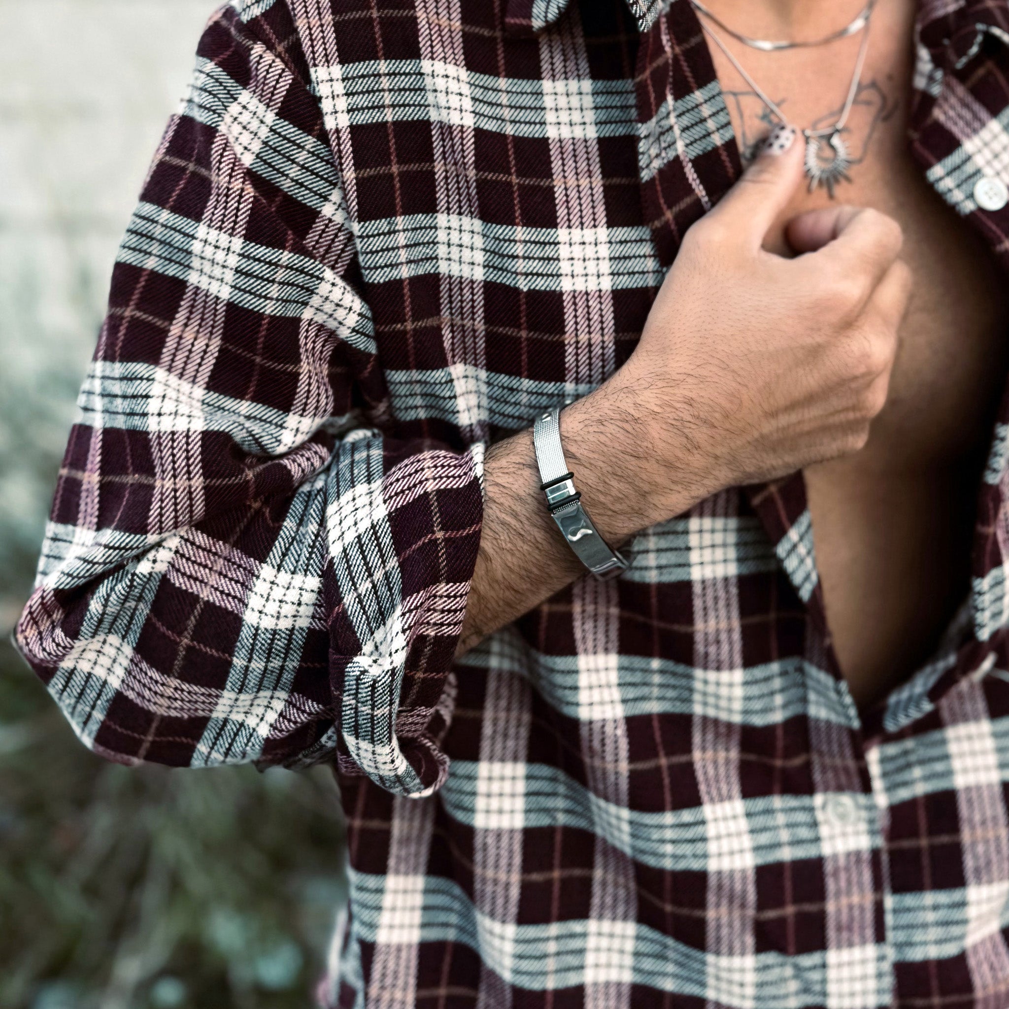 Pulsera Orión · Brazalete ajustable de acero de titanio con correa de reloj