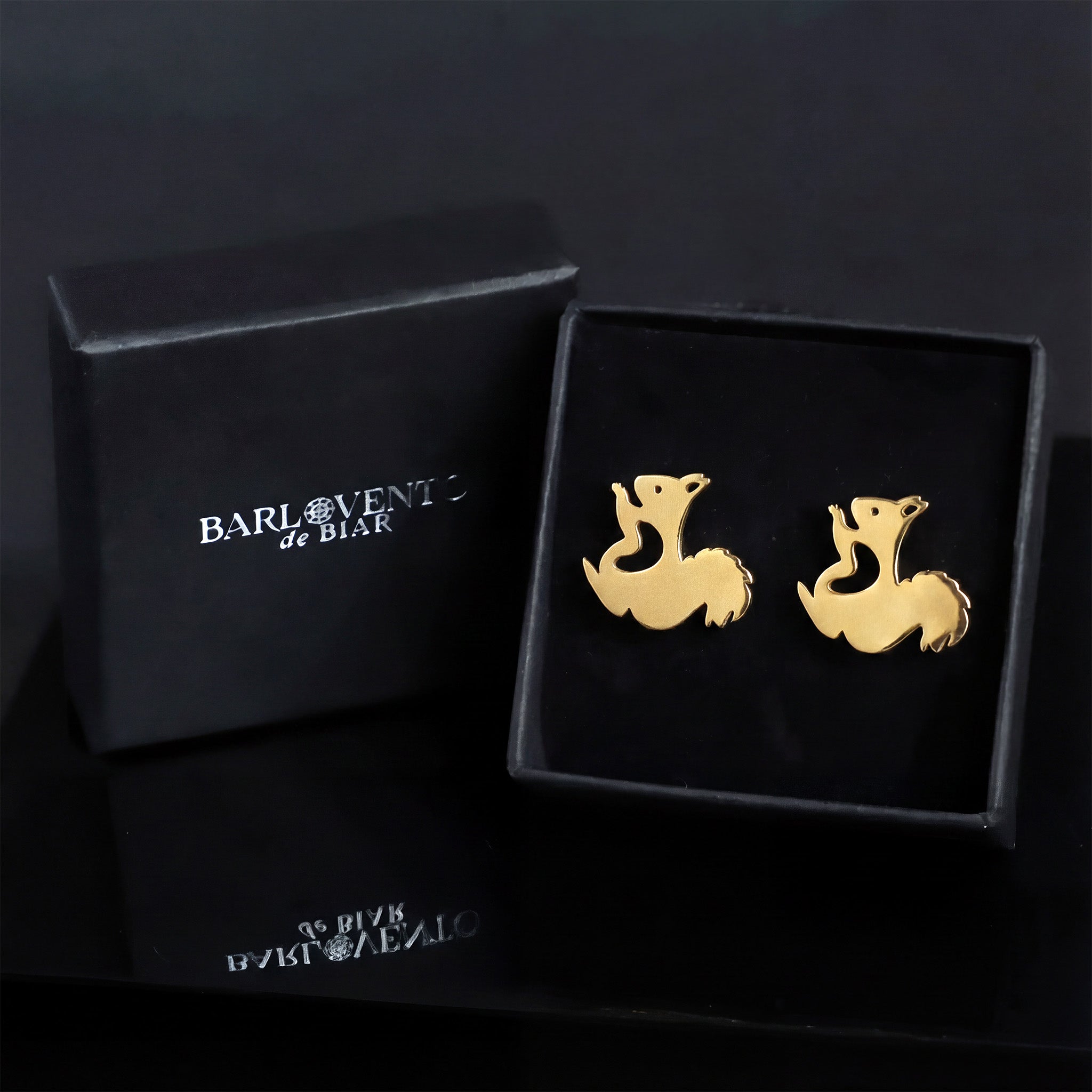 Un regalo encantador para los amantes de las ardillas. Estos gemelos dorados presentan pequeñas ardillas.