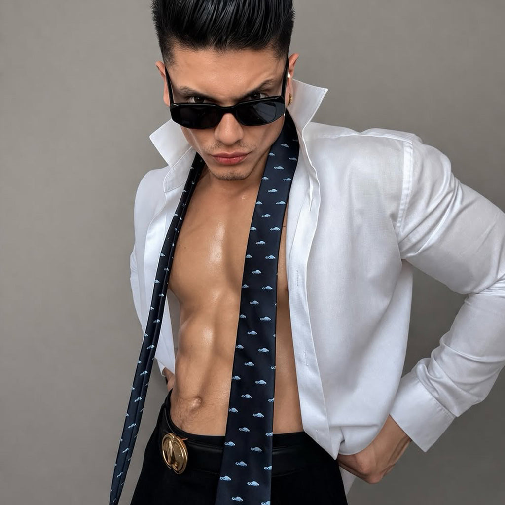 El coche deportivo es ingeniería convertida en deseo. Cada curva de la carrocería es una decisión técnica que también es una decisión estética, y quienes aman los coches de verdad lo saben. Esta corbata azul lleva ese espíritu al tejido con el mismo cuidado con que el diseñador de automóviles trabaja su línea.