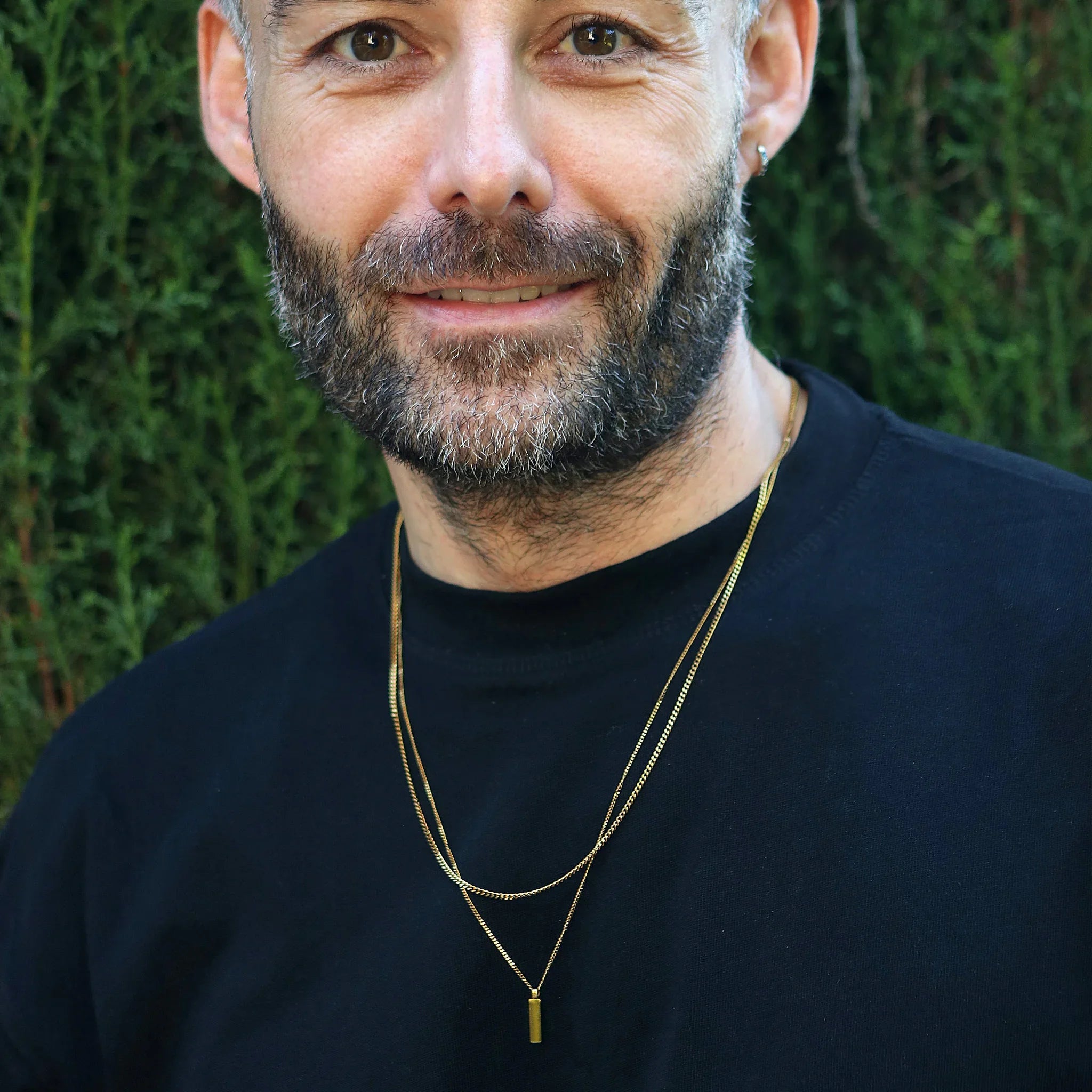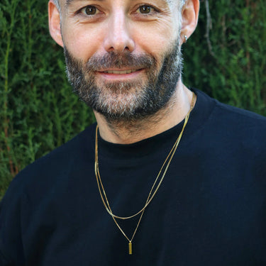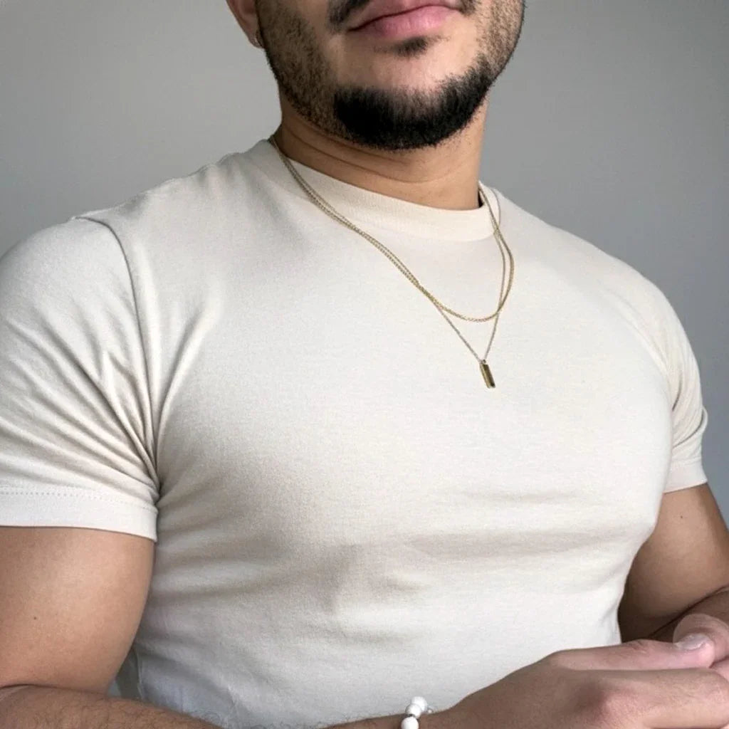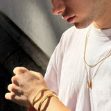 Collares en capas con colgante para hombre de acero inoxidable enchapado en oro de 18 k de 58 cm de largo. Incluye un colgante de 13 x 3,5 mm.
