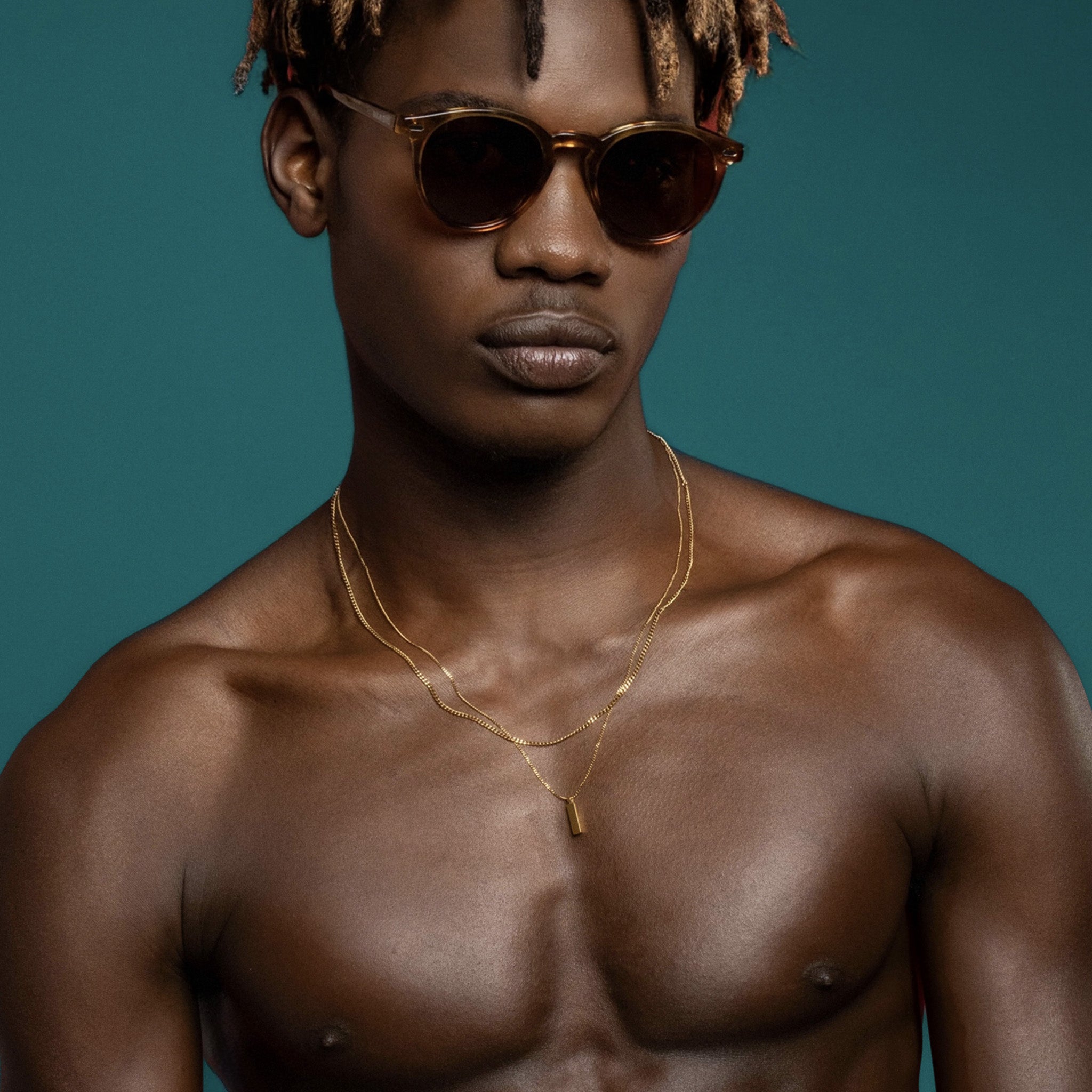 58 cm de cadena en capas doradas que convierte el cuello en una joya en sí mismo. Para quien ha descubierto que la joyería masculina en capas es la forma más contemporánea de expresar el estilo.