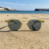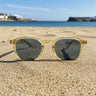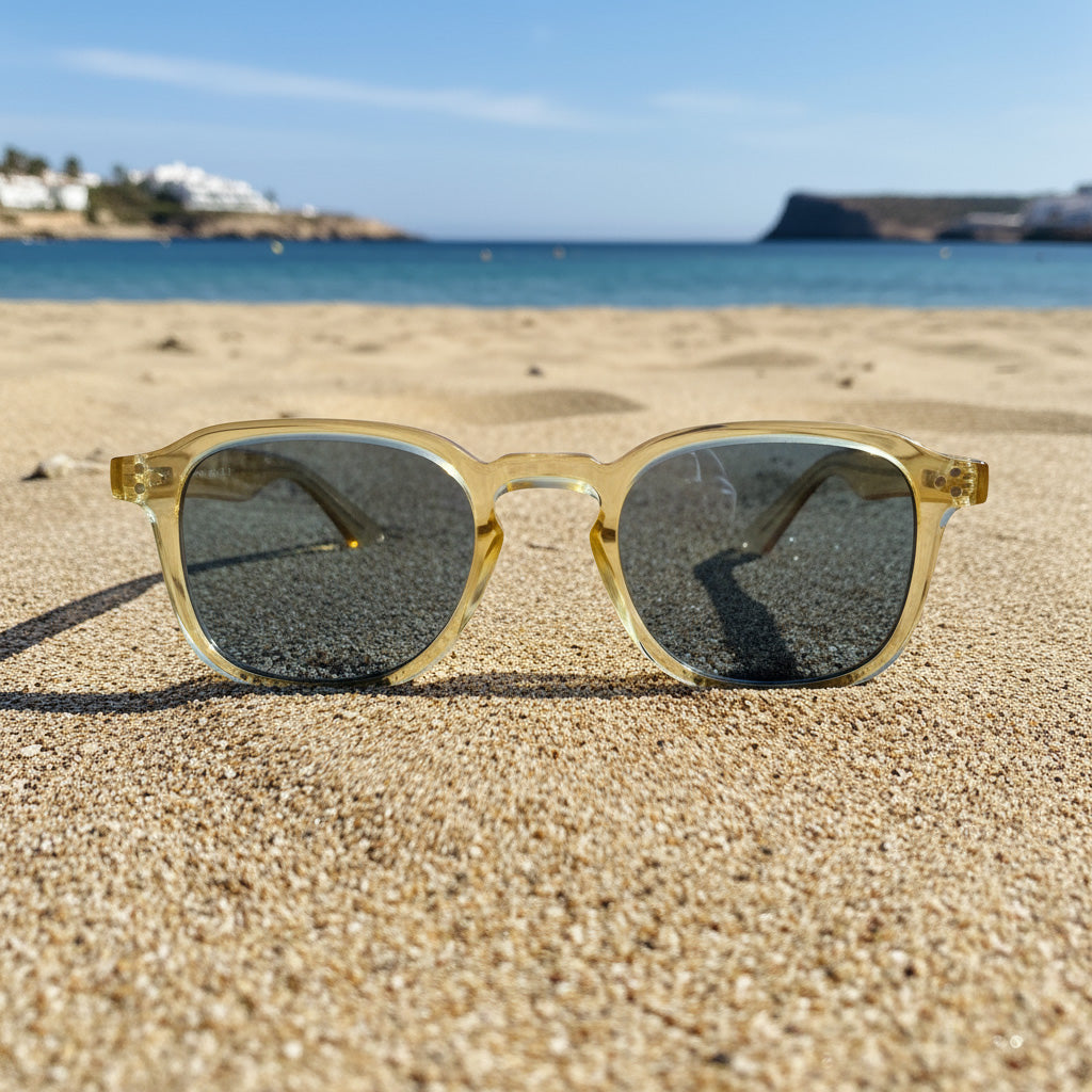 Cortadura · gafas de sol color crema cristal con lentes azules