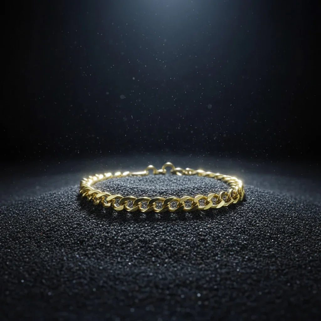 Pulsera Perseo · Cadena de eslabones cubanos de plata de ley 925 chapada en oro de 18 quilates