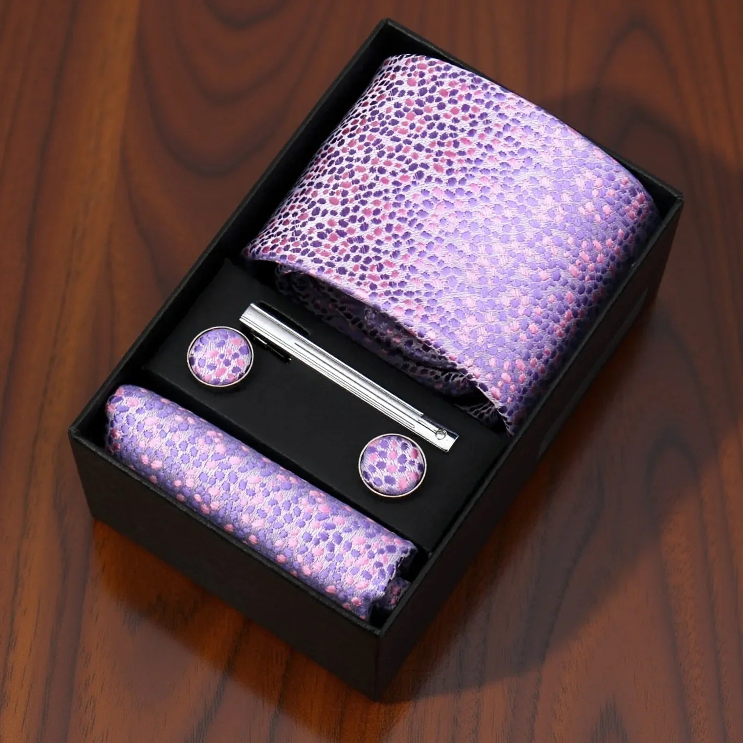 Salerno · Conjunto de gravata rosa com lenço, botões de punho e gancho para o cabelo