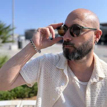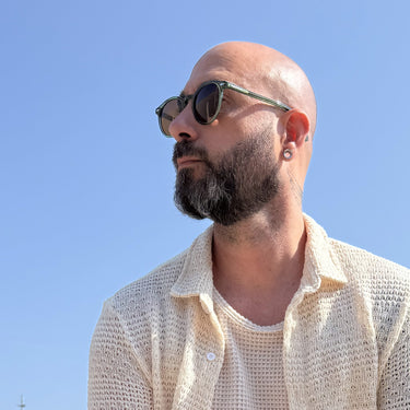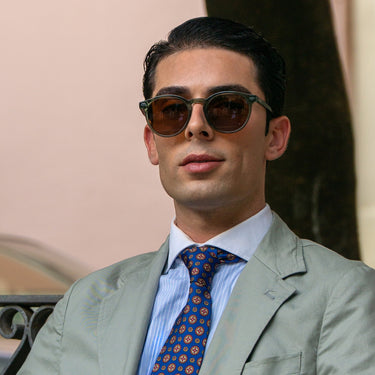 Bolonha · óculos de sol redondos de cristal verde com lentes marrons